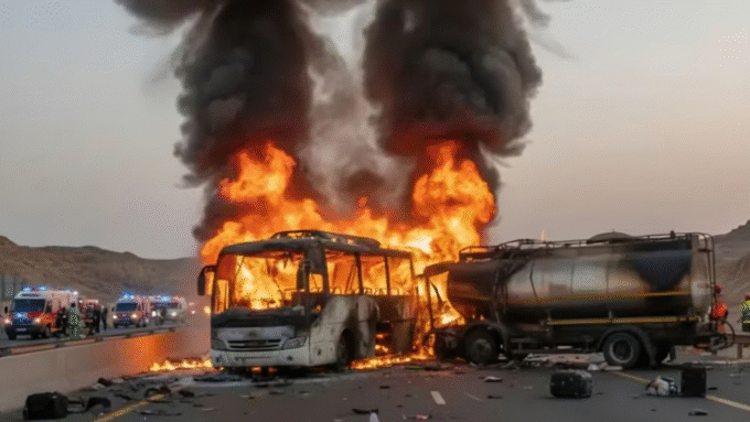 ByDesk ReportNovember 17, 2025সৌদি আরবে মক্কা–মদিনা মহাসড়কে একটি যাত্রীবাহী বাসের সঙ্গে ডিজেলবাহী ট্যাংকারের সংঘর্ষের পর ভয়াবহ অগ্নিকাণ্ডে অন্তত ৪৫ ওমরাহযাত্রী নিহত হয়েছেন। এদের মধ্যে ৪২ জন...
