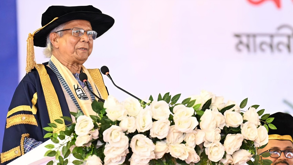 প্রধান উপদেষ্টা ড. মুহাম্মদ ইউনূস শিক্ষার্থীদের নতুন এক বিশ্ব গড়ে তোলার আহ্বান জানিয়েছেন । তিনি বলেন, ‘আমরা চাইলে আমাদের মতো করে এক নতুন বিশ্ব গড়ে তুলতে পারি।’