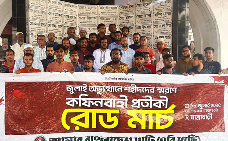 গণ-অভ্যুত্থানের পথিকৃৎ রাজনৈতিক দলগুলোর মধ্যে বিভেদ ক্রমেই প্রকট হচ্ছে বলে মন্তব্য করেছে ‘আমার বাংলাদেশ (এবি) পার্টি’। তাদের ভাষ্য, অংশীদার রাজনৈতিক শক্তিগুলো একে অপরকে হেয় করে কথা বলায় ঐক্যবদ্ধ আন্দোলনের ভিত্তি দুর্বল হয়ে পড়ছে, ক্ষুণ্ন হচ্ছে শহীদদের আত্মদান। শুক্রবার রাজধানীর বিজয় নগরের বিজয়-৭১ চত্বর থেকে শুরু হওয়া এক প্রতীকী কফিন রোডমার্চে এসব কথা বলেন দলটির শীর্ষ নেতারা।