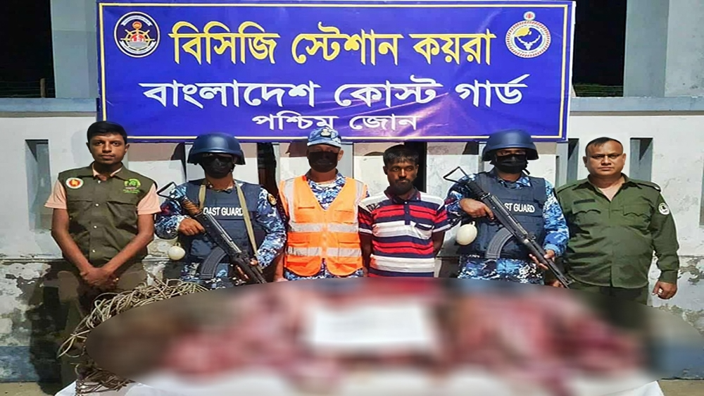 সোমবার (১৫ সেপ্টেম্বর) দুপুরে বিষয়টি নিশ্চিত করেন কোস্ট গার্ডের মিডিয়া কর্মকর্তা লেফটেন্যান্ট কমান্ডার সিয়াম-উল-হক। আটক শিকারির নাম মিজানুর রহমান। তিনি কয়রার আংটিহারা গ্রামের মৃত সাত্তার আলী গাজীর ছেলে।