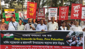ফিলিস্তিনের গাজায় ইসরায়েলি আগ্রাসন ও গণহত্যা বন্ধের দাবিতে ঢাকায় বিক্ষোভ মিছিল ও সমাবেশ করেছে বাংলাদেশের সমাজতান্ত্রিক দল (বাসদ)। শুক্রবার বিকেলে জাতীয় প্রেসক্লাবের সামনে এই কর্মসূচি অনুষ্ঠিত হয়।