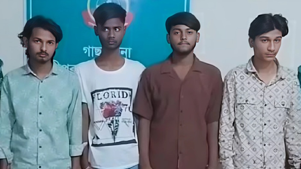 গ্রেপ্তারকৃতরা হলেন— নোয়াখালী জেলার সবুজের ছেলে সিয়াম খান অনিক (১৮), ময়মনসিংহ জেলার নতুন বাজার বালিপাড়া গ্রামের কামাল হোসেনের ছেলে শিমুল আহামেদ শাওন (২০), শরিয়তপুরের নাজিমুদ্দিন মোল্লারকান্দি গ্রামের জাহাঙ্গীর আলমের ছেলে শাহীন (১৯) ও গাছা থানার পূর্ব কলমেশ্বর এলাকার আমির হোসেনের ছেলে জয়নাল আবেদীন।