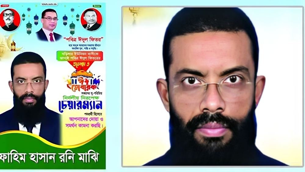 ফেস্টুনে নিজেকে নির্দলীয় ও নিরপেক্ষ চেয়ারম্যান পদপ্রার্থী হিসেবেও উল্লেখ করেছেন তিনি।