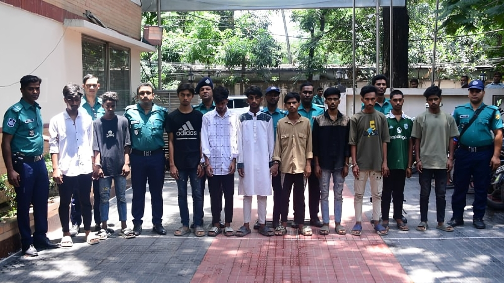 গ্রেপ্তাররা হলেন- নাঈম আহম্মেদ (২০), শাহীন আকন্দ শাহিনুল (২০), শাহীন চৌকিদার (২২), রহিম সরকার (১৯), নয়ন আহম্মেদ (১৯), রিদয় মাদবর (১৮), আব্দুর রাজ্জাক ওরফে রাজা (১৯), আনোয়ার হোসেন (১৯), শহিদুল ইসলাম (২০) ও আরমান (১৮)।
