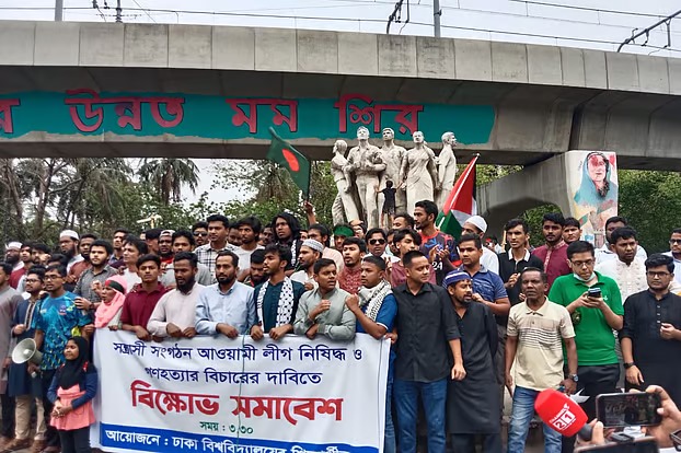 ঢাকা বিশ্ববিদ্যালয়ে আওয়ামী লীগ নিষিদ্ধের দাবিতে পৃথক পৃথক বিক্ষোভ মিছিল হয়েছে। শুক্রবার বিকেলে রাজু ভাস্কর্যের পাদদেশে ‘ঢাকা বিশ্ববিদ্যালয়ের সাধারণ শিক্ষার্থীদের ব্যানারে’ আয়োজিত সমাবেশ থেকে ‘গণহত্যাকারী আওয়ামী লীগ নিষিদ্ধকরণ মঞ্চ’ নামে একটি নতুন প্ল্যাটফর্মের ঘোষণা দেওয়া হয়েছে। উদ্যোক্তারা জানিয়েছেন, আওয়ামী লীগ নিষিদ্ধ না হওয়া পর্যন্ত এই প্ল্যাটফর্ম নানা কর্মসূচি পালন করবে।