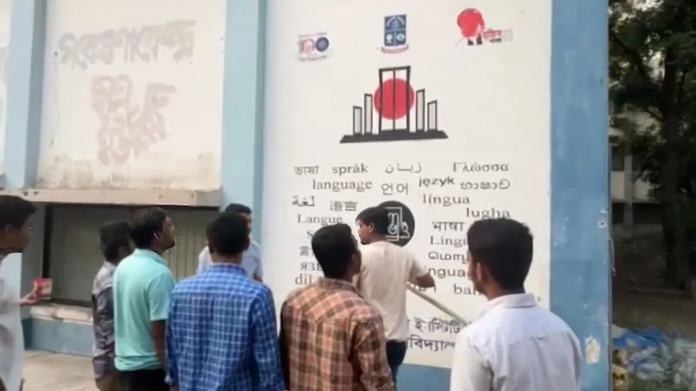 ঢাকা বিশ্ববিদ্যালয়ের বুকে যাতে আর কোন স্বৈরাচার জন্ম না নিতে পারে, সেই লক্ষ্যে ছাত্রদল ঢাবির আধুনিক ভাষা ইনস্টিটিউটের গেটে থাকা শেখ মুজিবুর রহমানের নাম ও গ্রাফিতি মুছে ফেলেছে।