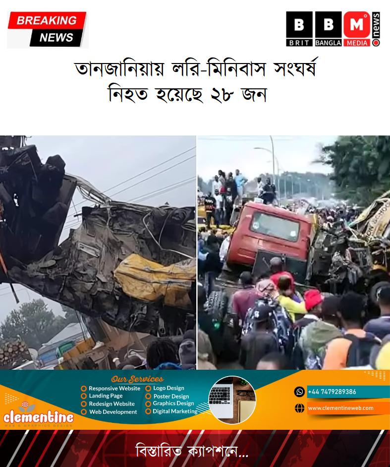 তানজানিয়ার দক্ষিণ-পশ্চিমাঞ্চলে মর্মান্তিক এক সড়ক দুর্ঘটনায় নিহত হয়েছেন কমপক্ষে ২৮ জন। দেশটির কর্তৃপক্ষ রোববার (৮ জুন) এই তথ্য নিশ্চিত করেছে।