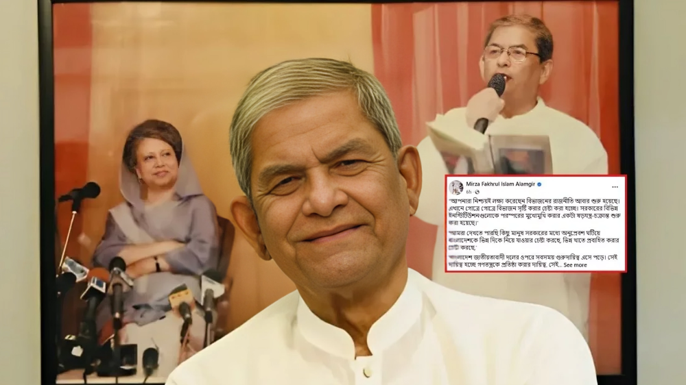 বিএনপি মহাসচিব তার পোস্টে লিখেছেন, আপনারা নিশ্চয়ই লক্ষ্য করেছেন আবারও বিভাজনের রাজনীতি শুরু হয়েছে। এখানে গোত্রে গোত্রে বিভাজন সৃষ্টি করার চেষ্টা করা হচ্ছে। সরকারের বিভিন্ন ইনস্টিটিউশনগুলোকে পরস্পরের মুখোমুখি করার একটা ষড়যন্ত্র-চক্রান্ত শুরু করা হয়েছে।