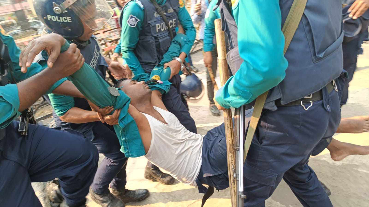 অন্যদিকে, সামাজিক যোগাযোগমাধ্যমে ছড়িয়ে পড়া কিছু ছবিতে দেখা যায়, পুলিশের একজন সহকারী কমিশনার এক নারী আন্দোলনকারীকে ধরে টানাহেঁচড়া করছেন, যা নিয়ে সমালোচনা শুরু হয়েছে। অনেকেই অভিযোগ তুলেছেন যে জুলাই-অগাস্টের গণআন্দোলনের সময়কার পরিস্থিতির পুনরাবৃত্তি হচ্ছে এবং পুলিশ ‘ফ্যাসিস্ট’ কায়দায় আচরণ করছে।
