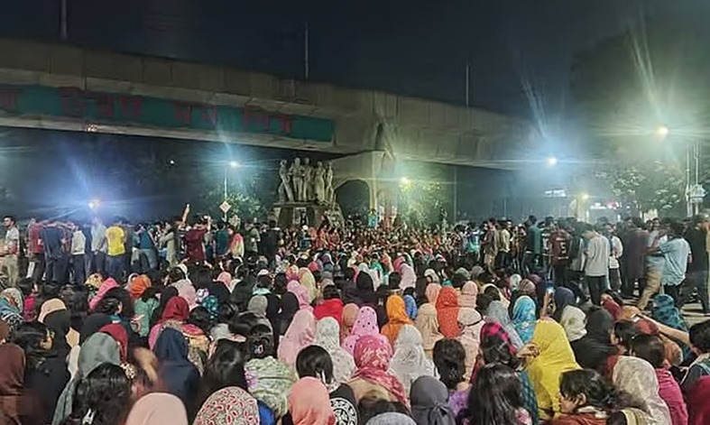 এর আগে, রাত ১২টার দিকে কবি সুফিয়া কামাল হলের শিক্ষার্থীরা ধর্ষণের বিরুদ্ধে বিক্ষোভ শুরু করলে ড. মুহম্মদ শহীদুল্লাহ্ হলের শিক্ষার্থীরাও তাঁদের সঙ্গে যোগ দেন। এরপর মিছিল নিয়ে শিক্ষার্থীরা রাজু ভাস্কর্যের সামনে এসে জড়ো হন।