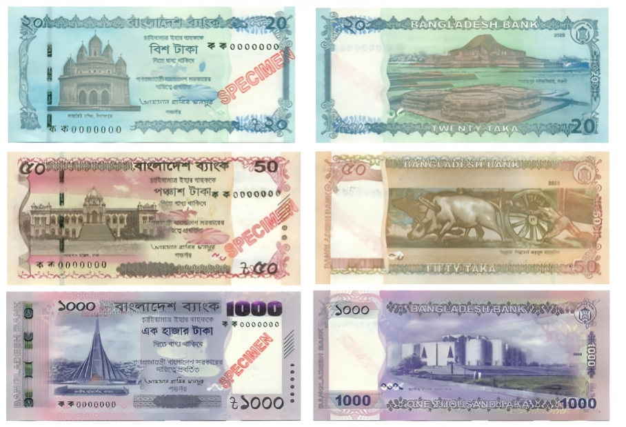 ১০০০, ৫০ ও ২০ টাকার এই নতুন নোটগুলোতে বাংলাদেশের ইতিহাস ও প্রাকৃতিক সৌন্দর্যের বিভিন্ন প্রতীকী ছবি থাকবে।
