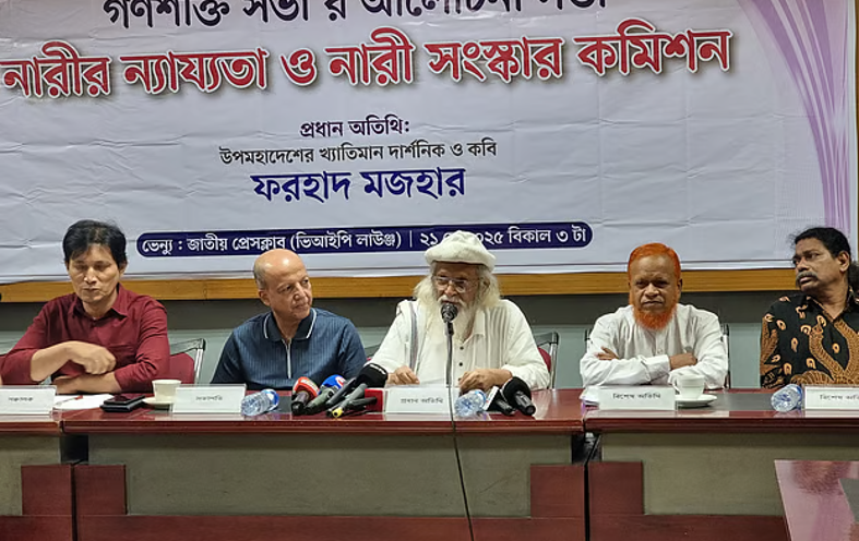 ফরহাদ মজহার বলেন, নারী সংস্কার কমিশন নিয়ে আলোচনা যখন যুক্তি ও নীতিনির্ভর পথে এগোনোর কথা ছিল, তখন তা কিছু আলেমের কটূক্তি ও গালাগালের কারণে বিপথে গেছে। এই প্রবণতা সমাজে একটি গভীর দুর্বলতা ও অযোগ্যতার ইঙ্গিত দেয়, যেখানে কথার জোরে যুক্তিকে চাপা দেওয়ার চেষ্টা হয়।
