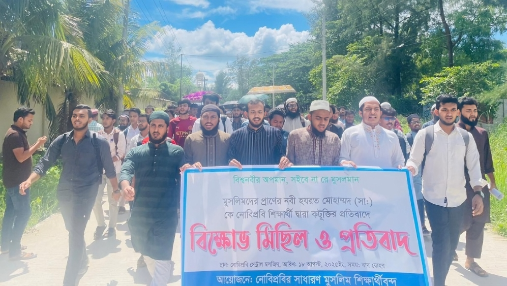 নোবিপ্রবিতে মহানবীকে কটূক্তির অভিযোগে শিক্ষার্থীদের বিক্ষোভ