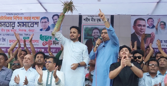 বগুড়ার শিবগঞ্জে অনুষ্ঠিত ছাত্র-জনতার এক সমাবেশে (রোববার ৯ নভেম্বর বিকাল) শহীদ মীর...