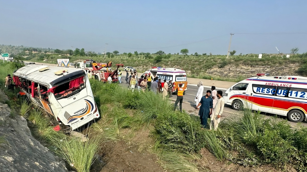 রাজধানী ইসলামাবাদ থেকে লাহোরগামী যাত্রীবাহী বাসের একটি চাকা হঠাৎ বিস্ফোরিত হয়। এতে চালক নিয়ন্ত্রণ হারালে রাস্তার পাশে গভীর খাদে পড়ে উল্টে যায় বাসটি। বাসটিতে ৩৫ থেকে ৪০ জন যাত্রী ছিলেন।