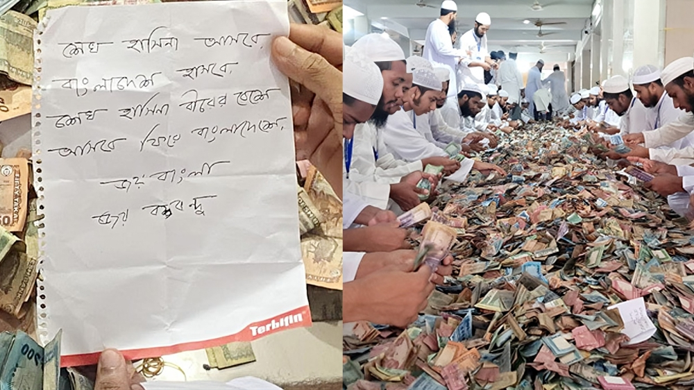 চিঠিতে লেখা ছিল— “শেখ হাসিনা আসবে বাংলাদেশ হাসবে, শেখ হাসিনা বীরের বেশে আসবে ফিরে বাংলাদেশে, জয় বাংলা জয় বঙ্গবন্ধু।” সকাল ৭টা থেকে দানবাক্স খোলার কাজ শুরু হয়। গণনার কাজে অংশ নেন মসজিদ কমপ্লেক্সের শিক্ষক-শিক্ষার্থী, পার্শ্ববর্তী মাদরাসার শিক্ষার্থী, রূপালী ব্যাংকের কর্মকর্তা-কর্মচারীসহ প্রায় চার শতাধিক স্বেচ্ছাসেবক।