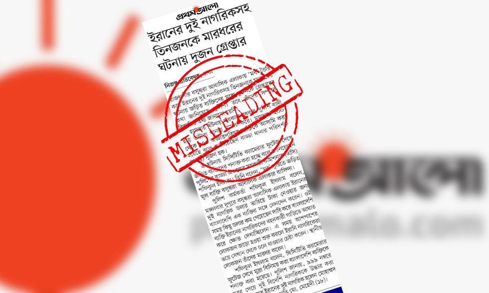 রাজধানীর বসুন্ধরা আবাসিক এলাকায় ইরানের দুই নাগরিকসহ তিনজনকে মারধরের যে খবর প্রথম আলোসহ কয়েকটি গণমাধ্যম প্রকাশ করেছে, তা সম্পূর্ণ ভুল ও বিভ্রান্তিকর। প্রকৃতপক্ষে, এ ধরনের কোনো ঘটনাই বসুন্ধরা আবাসিক এলাকায় ঘটেনি।
