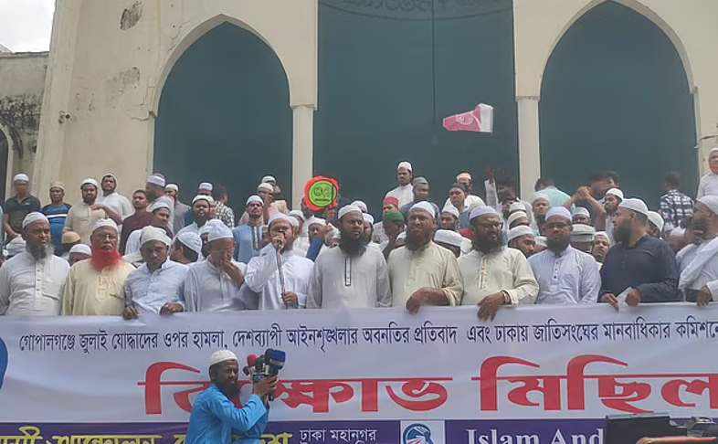 ইসলামী আন্দোলন বাংলাদেশের ঢাকা মহানগর উত্তর-দক্ষিণ শাখা এবং বাংলাদেশ খেলাফত মজলিসের ঢাকা মহানগর দক্ষিণ শাখার উদ্যোগে আয়োজিত সমাবেশে শতাধিক নেতাকর্মী উপস্থিত ছিলেন। বক্তারা বলেন, গোপালগঞ্জে এনসিপি নেতাদের ওপর হামলা একটি সুপরিকল্পিত ও অগণতান্ত্রিক আক্রমণ। এ ঘটনায় সরকারের ভূমিকাও প্রশ্নবিদ্ধ।