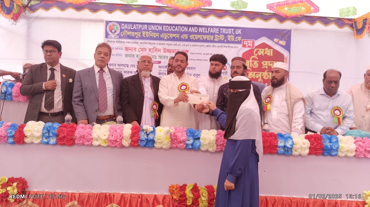 বিশ্বনাথ (সিলেট) প্রতিনিধি – সিলেটের বিশ্বনাথ উপজেলার দৌলতপুর ইউনিয়ন এডুকেশন এন্ড ওয়েলফেয়ার ট্রাস্ট ইউকে’র উদ্যোগে দৌলতপুর ইউনিয়নের ১৩২ শিক্ষার্থীকে ৪ লক্ষ ৩৬ হাজার টাকার ৭ম মেধা বৃত্তি বিতরণ করা হয়েছে। শনিবার (২ ফেব্রুয়ারি) দুপুরে দৌলতপুর ইউনিয়নের গোয়াহরি লতিফিয়া ইরশাদিয়া দাখিল মাদ্রাসা সংলগ্ন মাঠে এ বর্ণাঢ্য আয়োজনের মধ্য দিয়ে ইউনিয়নের ১৮টি প্রাথমিক বিদ্যালয়, ৭ টি মাদ্রাসা ও ৩ উচ্চ মাধ্যমিক এবং কলেজের ১৩২ গরীব ও মেধাবী শিক্ষার্থীর মাঝে এ বৃত্তি বিতরণ করেন অতিথিরা।