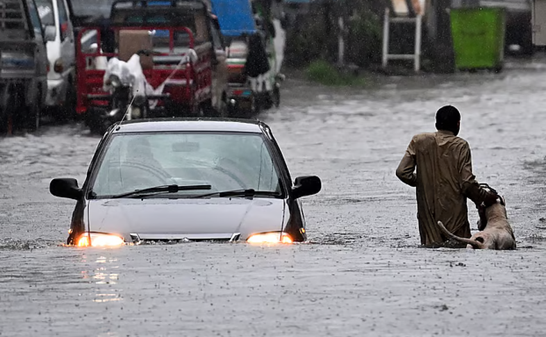 রাজধানী ইসলামাবাদের পাশের শহর রাওয়ালপিন্ডি তলিয়ে গেছে বৃষ্টির পানিতে। নালা লাই নদী বিপৎসীমার ওপরে প্রবাহিত হচ্ছে। নিচু এলাকাগুলোর বাসিন্দাদের সরিয়ে নেওয়া হচ্ছে জরুরি ভিত্তিতে। সোশ্যাল মিডিয়ায় ছড়িয়ে পড়া ছবিতে দেখা যায়, পানির মধ্যে কুকুরসহ একজন ব্যক্তি হাঁটুসমান জলে নিরাপদ আশ্রয়ের খোঁজে ছুটছেন—এক বেদনাবিধুর বাস্তবতা।