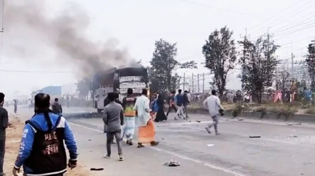 গাজীপুরের বেক্সিমকো ইন্ডাস্ট্রিয়াল পার্কের বন্ধ কারখানা খুলে দেওয়ার দাবিতে ফের বিক্ষোভে উত্তাল হয়ে উঠেছে শ্রমিকরা। বুধবার (২২ জানুয়ারি) বিকেলে হাজারো শ্রমিক চন্দ্রা-নবীনগর মহাসড়ক অবরোধ করে কাঠ ও টায়ারে আগুন জ্বালায়। বিক্ষোভ চলাকালে চারটি বাসে অগ্নিসংযোগ এবং অর্ধশতাধিক যানবাহন ভাঙচুরের ঘটনা ঘটে।