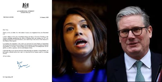 প্রধানমন্ত্রী স্টারমার এক চিঠিতে টিউলিপের অবদানকে শ্রদ্ধা জানিয়ে বলেছেন, “তার অঙ্গীকার ও নেতৃত্ব যুক্তরাজ্যের আর্থিক ব্যবস্থার উন্নতিতে অসামান্য ভূমিকা রেখেছে।”