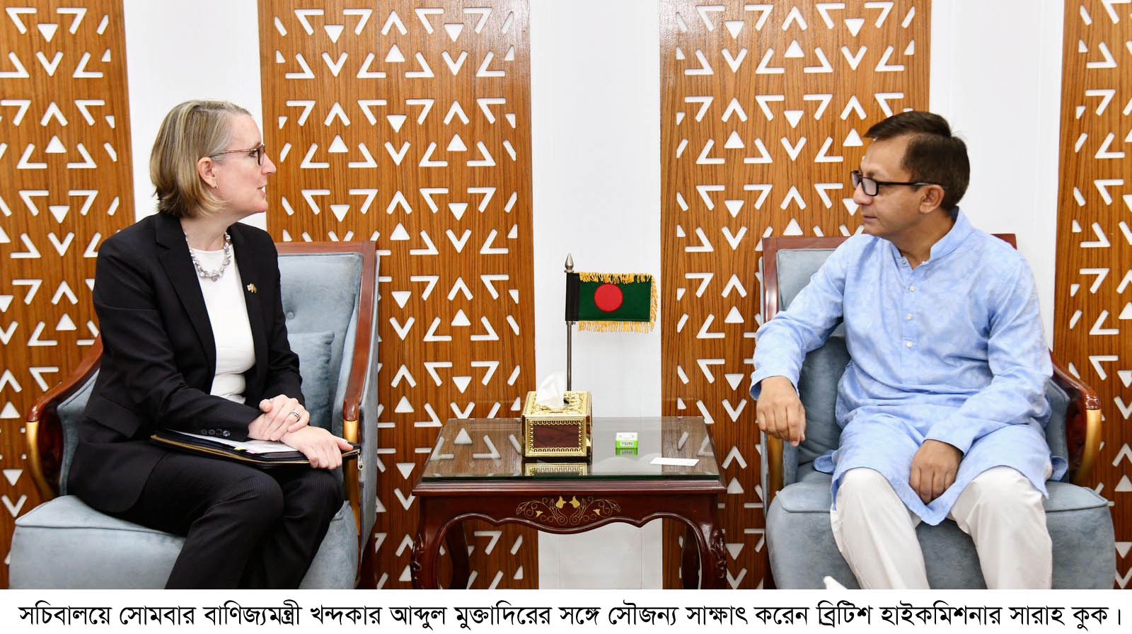 বৈঠকে সারাহ কুক বাংলাদেশের ট্রেড নেগোসিয়েশন পুলের কর্মকর্তাদের দক্ষতা বৃদ্ধিতে সহায়তার আগ্রহ প্রকাশ করেন। তিনি চা বাগানের পাশাপাশি সীফুড, লেদার প্রসেসিং এবং লাইট ইঞ্জিনিয়ারিং খাতে ব্রিটিশ বিনিয়োগকারীদের আগ্রহের কথাও তুলে ধরেন।