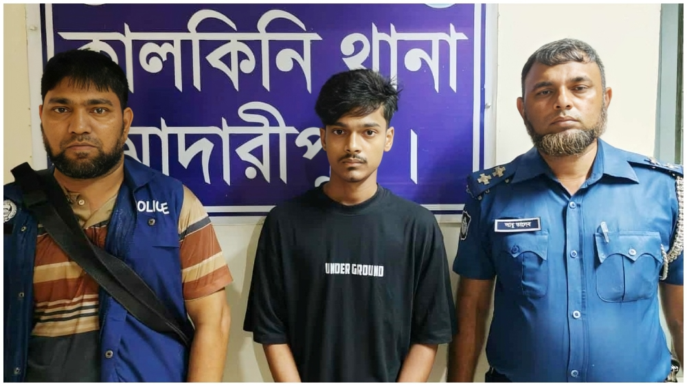 মাদারীপুরের কালকিনিতে নিষিদ্ধ ছাত্রলীগ নেতা সাফায়েত ইভান (১৯)-কে গ্রেফতার করেছে পুলিশ। রাতের আধারে মিছিল বের করে তার ভিডিও সামাজিক যোগাযোগমাধ্যমে ছড়িয়ে আতঙ্ক সৃষ্টি করার অভিযোগে তাকে আটক করা হয়।