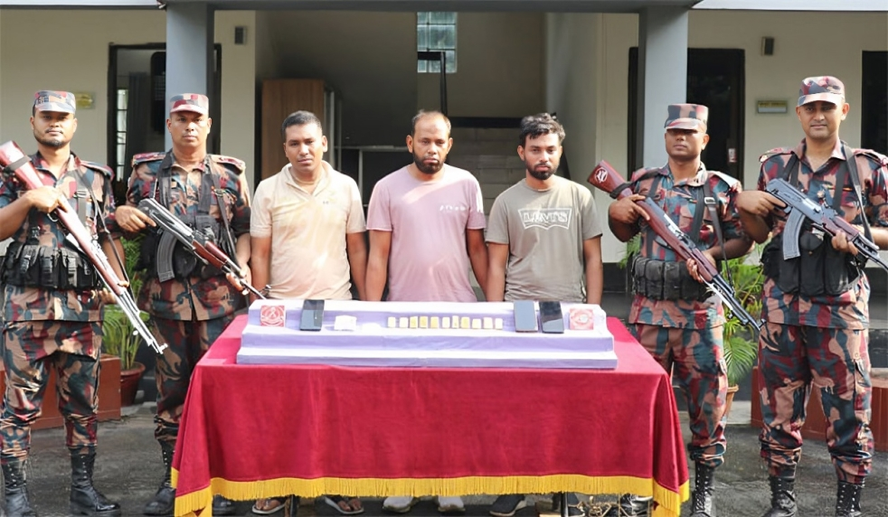 বর্ডার গার্ড বাংলাদেশ (বিজিবি) যশোরের বাঘারপাড়ায় এক কেজি ৩১৫ গ্রাম ওজনের ১১টি স্বর্ণের বারসহ তিন পাচারকারীকে আটক করেছে । উপজেলার ধলগাঁ রাস্তা বাসস্ট্যান্ড থেকে রোববার (১৩ জুলাই) ভোররাত সাড়ে ৪টার দিকে আটক করা হয় তাদের। বিজিবি জানিয়েছে, আটক স্বর্ণের বাজারমূল্য এক কোটি ৯২ লাখ ২৭ হাজার ৯৩০ টাকা।