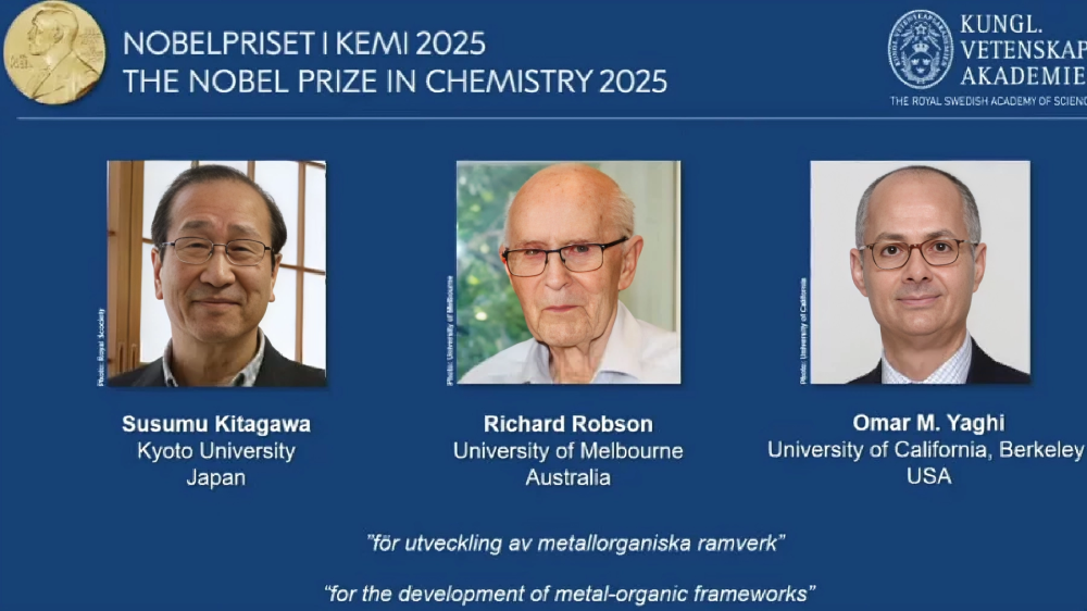 রসায়নে বিশেষ অবদানের জন্য এ বছর নোবেল পুরস্কার পেয়েছেন তিনজন বিজ্ঞানী— সুসুমু কিতাগাওয়া, রিচার্ড রবসন এবং ওমর এম. ইয়াগি। তাদের অসাধারণ গবেষণা ও উদ্ভাবনের ফলে রসায়ন জগতে নতুন সম্ভাবনার দ্বার উন্মোচিত হয়েছে। বিশেষ করে ‘মেটাল-অর্গানিক ফ্রেমওয়ার্ক (MOFs)’ নামের কাঠামো উন্নয়নে অবদানের জন্য তাদের এই মর্যাদাপূর্ণ পুরস্কারে ভূষিত করা হয়েছে। বুধবার (৮ অক্টোবর) বাংলাদেশ সময় বিকেল ৩টা ৪৫ মিনিটে রয়্যাল সুইডিশ অ্যাকাডেমি অব সায়েন্সেস এই তিন বিজ্ঞানীর নাম ঘোষণা করে।