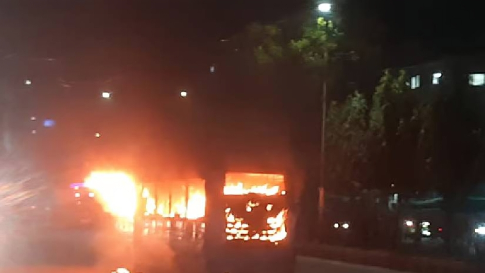 রাজধানীর পল্লবীতে বাসে আগুন দিয়েছে দুর্বৃত্তরা
