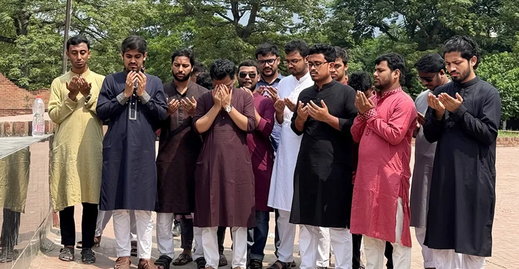 ঢাকা বিশ্ববিদ্যালয় কেন্দ্রীয় ছাত্র সংসদের (ডাকসু) নবনির্বাচিত নেতারা রায়েরবাজার কবরস্থানে একাত্তরের মুক্তিযুদ্ধ ও ২০২৪ সালের জুলাই আন্দোলনের শহীদদের প্রতি শ্রদ্ধা নিবেদন করেছেন।