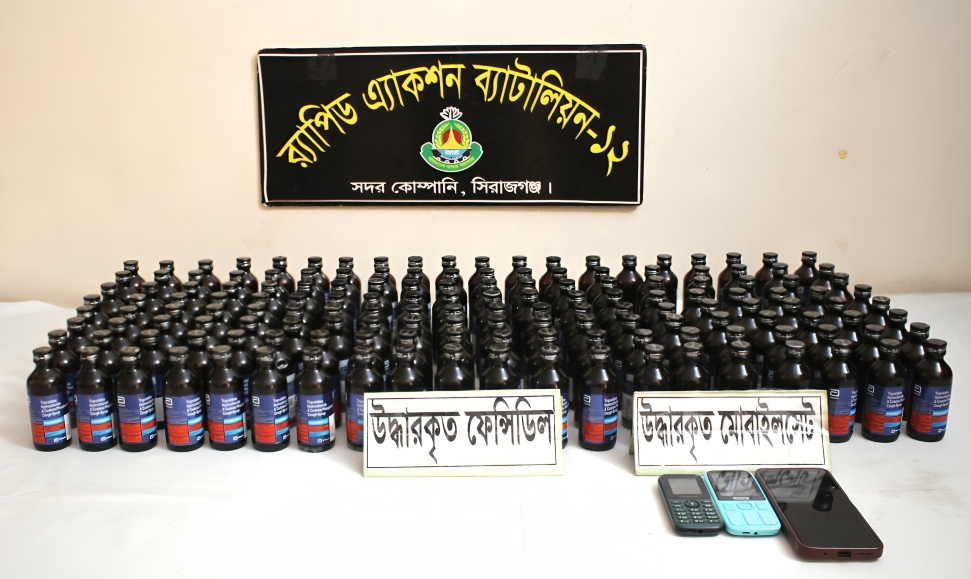 সিরাজগঞ্জে র‌্যাবের অভিযানে ১৫৮ বোতল ফেন্সিডিলসহ তিন নারী গ্রেফতার