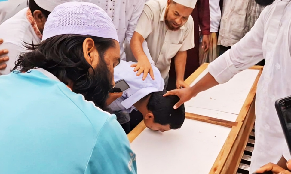 এদিকে সকালে জানাজা শেষে বাবা দেলোয়ার হোসাইন রানা মেয়ের কপালে নয় বারবার চুমু খাচ্ছিলেন কফিনে আর কান্নায় ভেঙে পড়েছিলেন । অশ্রুসিক্ত নয়নে কফিনে চুমু দিয়ে মেয়ের শেষ বিদায়ের এমন দৃশ্য যেনো দেখেনি কেউ। এমন দৃশ্য দেখে কান্না ধরে রাখতে পারেননি কেউই।