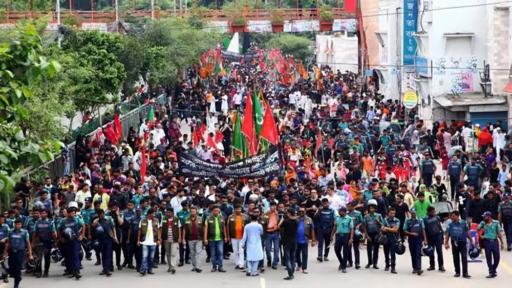 রাজধানীর চারশ বছরের পুরোনো হোসেনি দালান থেকে রোববার (৬ জুলাই) সকাল সাড়ে ১০টায় এই শোকের মিছিল বের হয়েছে।